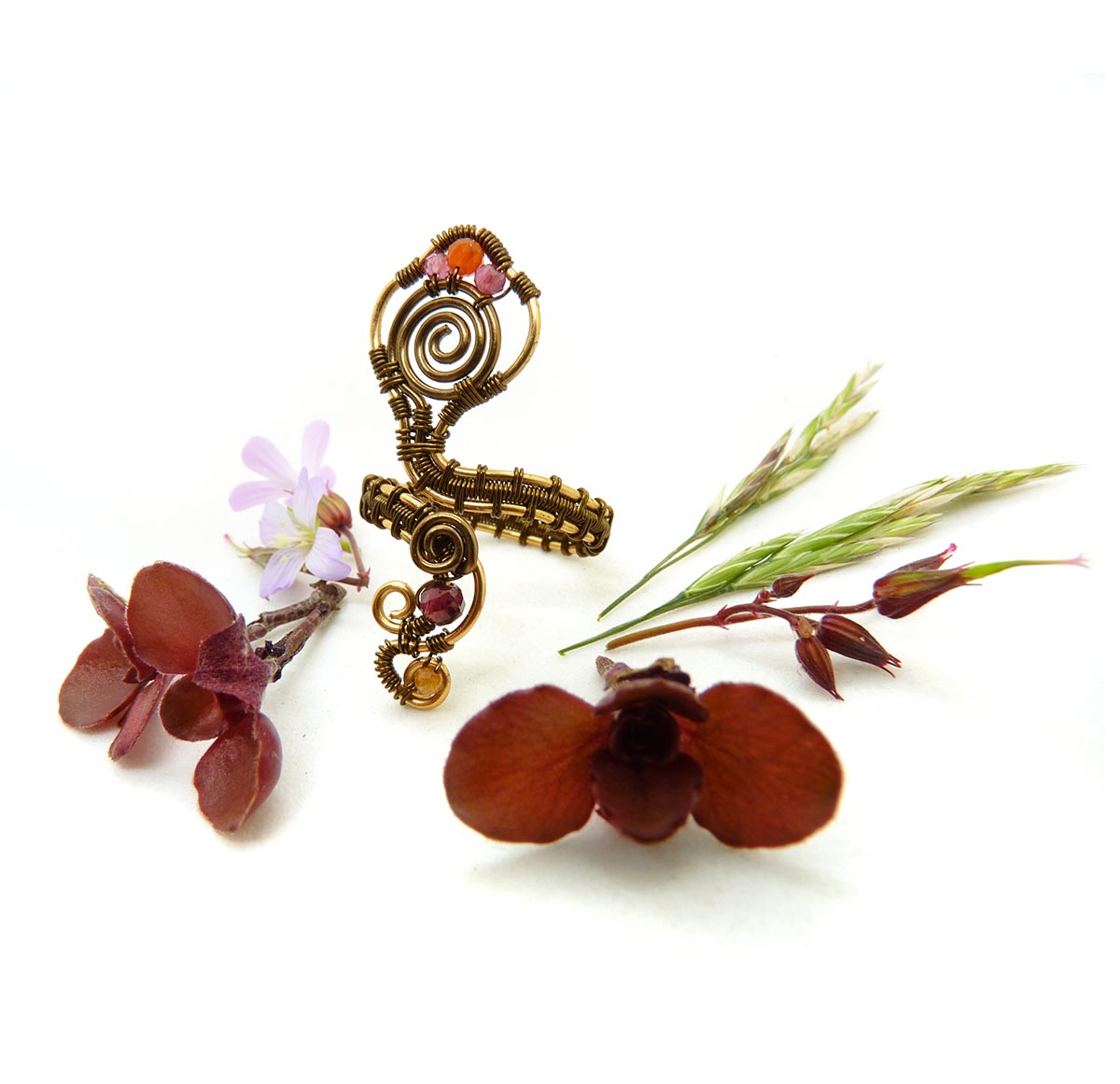 Pierres gemmes utilisées : cornaline, grenat rouge et grenat hessonite
