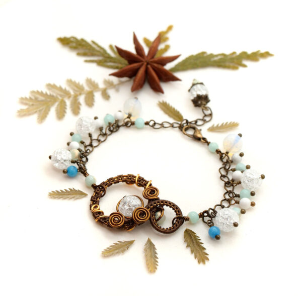 – Bracelet « Manteau Neigeux » en Wire wrapping et pierres gemmes –